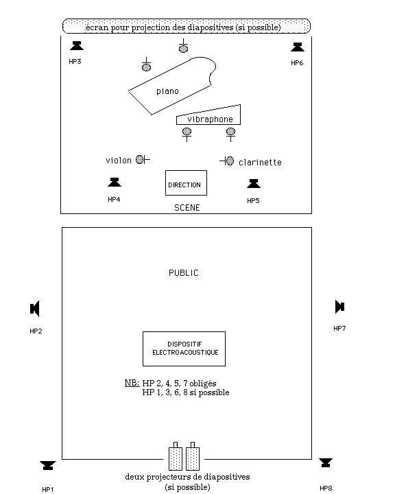 L'électroacoustique est l'épicentre de cette succession, jouant le rôle de miroir plus ou moins déformant des instruments et permettant une ouverture sur la dimension spatiale (idées de relief et de profondeur de champ).