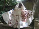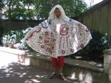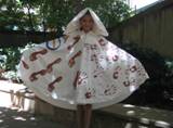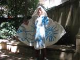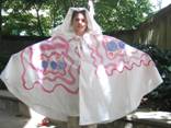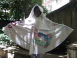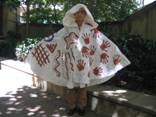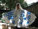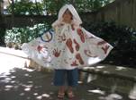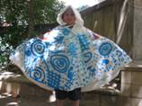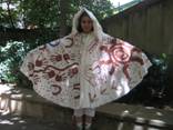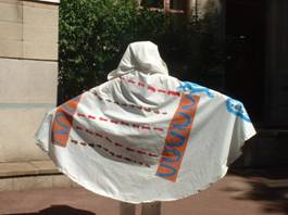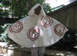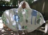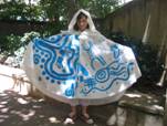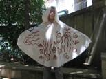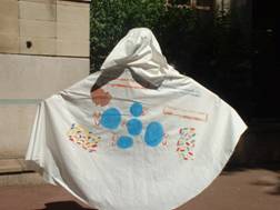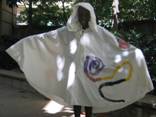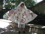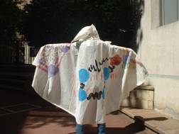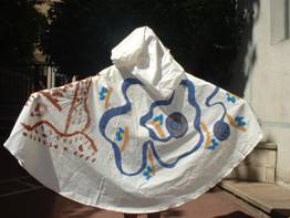 Pour la création, des ponchos fabriqués ont permis aux participants un travail pictural en relation à la fois avec les peintures aborigènes et la structure de la pièce : le dos représente le groupe. Exemples de la création :